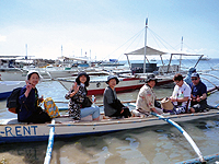 セブ島の旅、何度足を運んでも様々な見ごたえのある飽きのこない素敵な島。今回の目的地は日本人(崎山克彦さん)が所有のカオハガン島です。会報で見たり、聞いたりしていた島。コーラルポイントリゾートからバンカーボートで1時間弱で着きました。緑に囲まれた小さな島です。日本人スタッフの案内で島内あちらこちらを見学しました。島民達の持続可能な自立を目指して利益を還元するキルト・パッチワーク。子供達のお魚キルト。一針一針縫って仕上げたランチョンマット、様々な製品。小学生は日曜日でしたが、教室内を見せていただきました。民家の軒下を通り、風通しのよい住まいを拝見したり、ニワトリの歓声を浴びながら・・・お腹が空いてきた頃、ちょうどパン屋さんの横を通りました。香り良い甘いパンを1個ずついただきました。魚市場では気に入ったシマシマ模様で30センチ位のシャコ?を注文しました。昼食時に焼いてくれました。南国の味でとても美味。食後には初めて味わうトウモロコシコーヒーをいただきました。穏やかな風に吹かれて周りから聞こえてくるのは島の声、木々の葉ずれの音。ゆったりと心地よい時を過ごさせていただきました。今回の旅は、19名の会員さん達と楽しくご一緒させていただきました。パーティーは盛り上がり、メイドさん、ドライバーさん、ガイドさん楽しい旅をありがとうございました。
